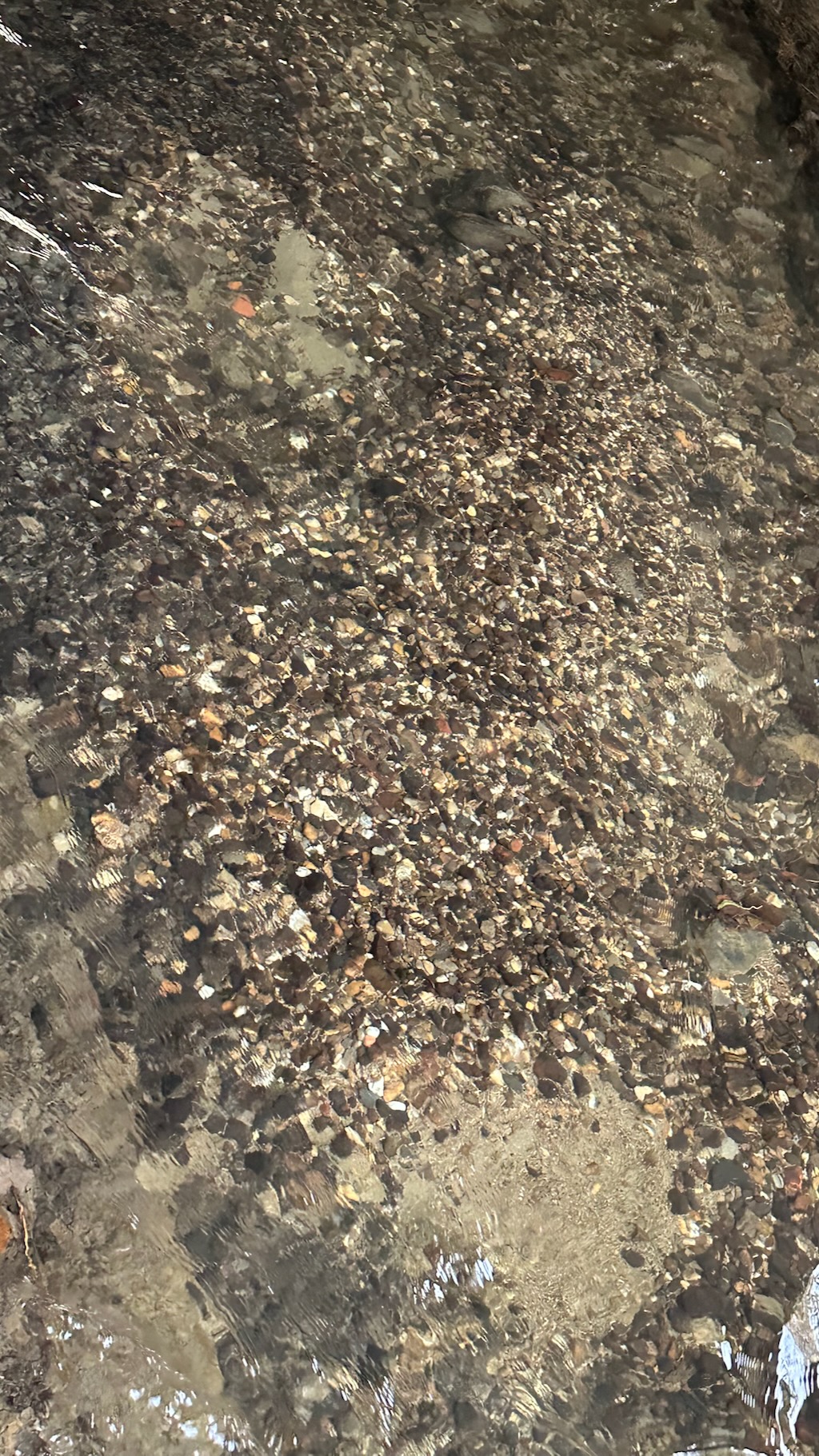 Anschliessen fuhren wir mit der ganzen Gruppe nach Holziken an die Uerke. Gespannt liefen wir mit Polbrillen und FIBER App bewaffnet los und hofften Laichgruben zu finden. Nach einer Stunde dem Bach entlang hoch und wieder runter zulaufen, wollten wir schon aufgeben und zu unseren Autos zurück gehen, als Andrin uns zusammenrief. Direkt unter der Kantonstrassenbrücke entdeckten wir am Schluss doch noch eine erste, gut erkennbare Laichgrube. Die Forelle stand am Anfang sogar noch da, versteckte sich aber natürlich sofort nach der ersten Sichtung. Glücklich und zufrieden mit dem Gelernten und Gesehenen versammelte sich die Gruppe zum Abschluss beim Parkplatz und genoss noch einen Zvieri-Berliner.